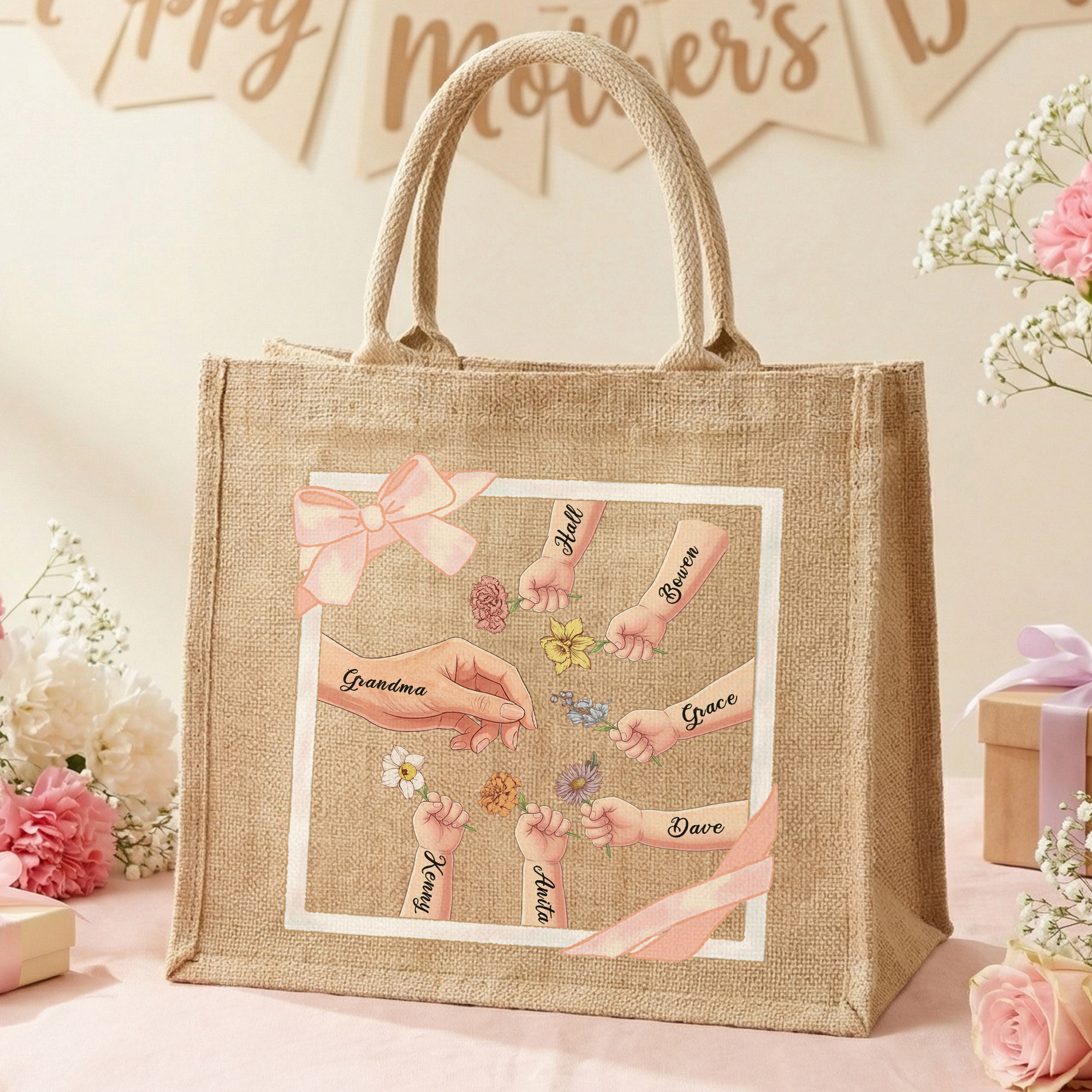 Gift for Moms/Grandmas - A meaningful gift choice for Mother’s Day, birthdays, anniversaries, or family celebrations. This personalized jute tote is a lovely surprise for moms, grandmas, new mothers, or anyone who treasures family memories.