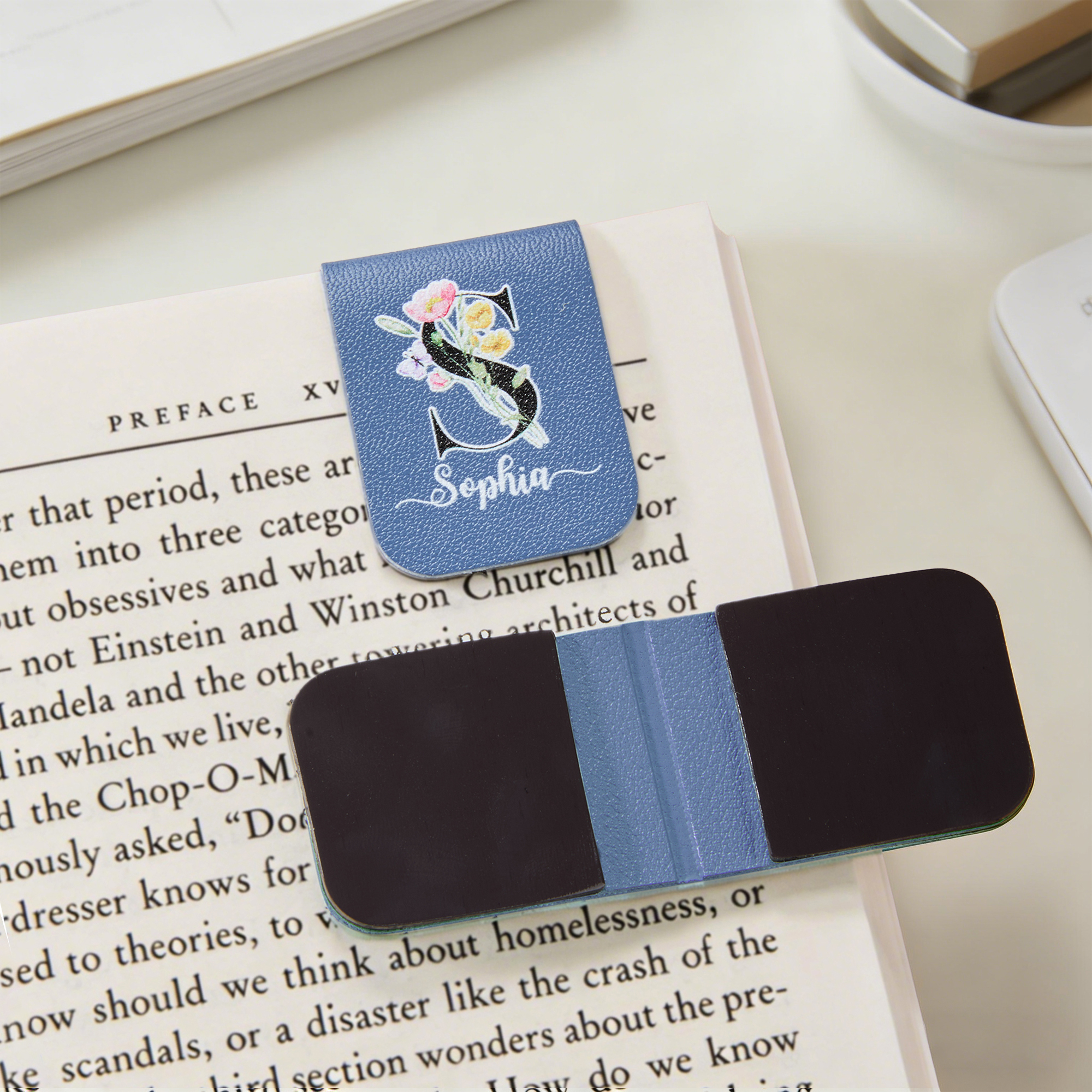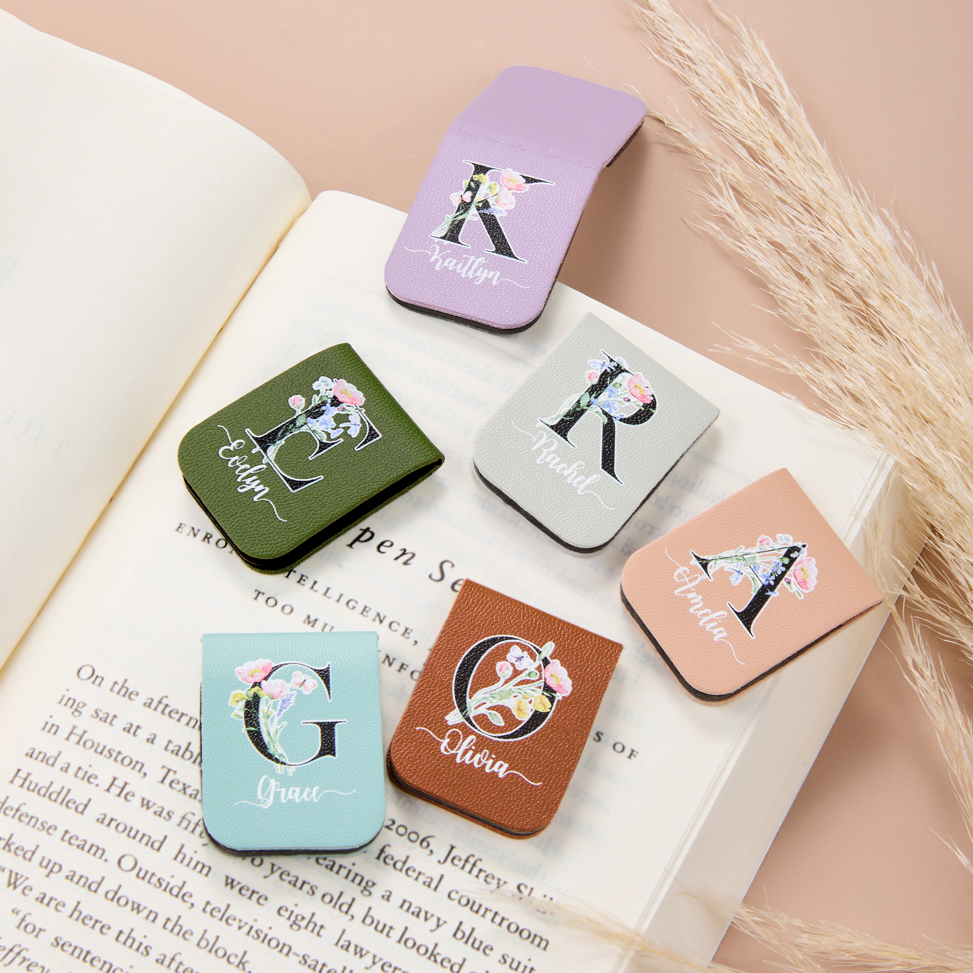 • Personalized Name Floral Alphabet Bookmark, Magnetic Leather Bookmark Clip, Birthday/Anniversary/Graduation Gift for Book Lovers/Readers/Women